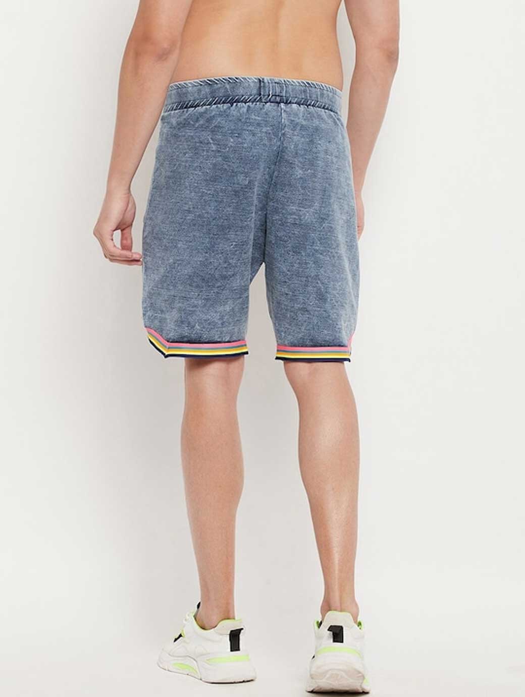 Men Blue Washed Denim Shorts
