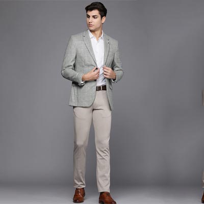 Men Grey Checked Single-Breasted Long Sleeves Formal Blazer